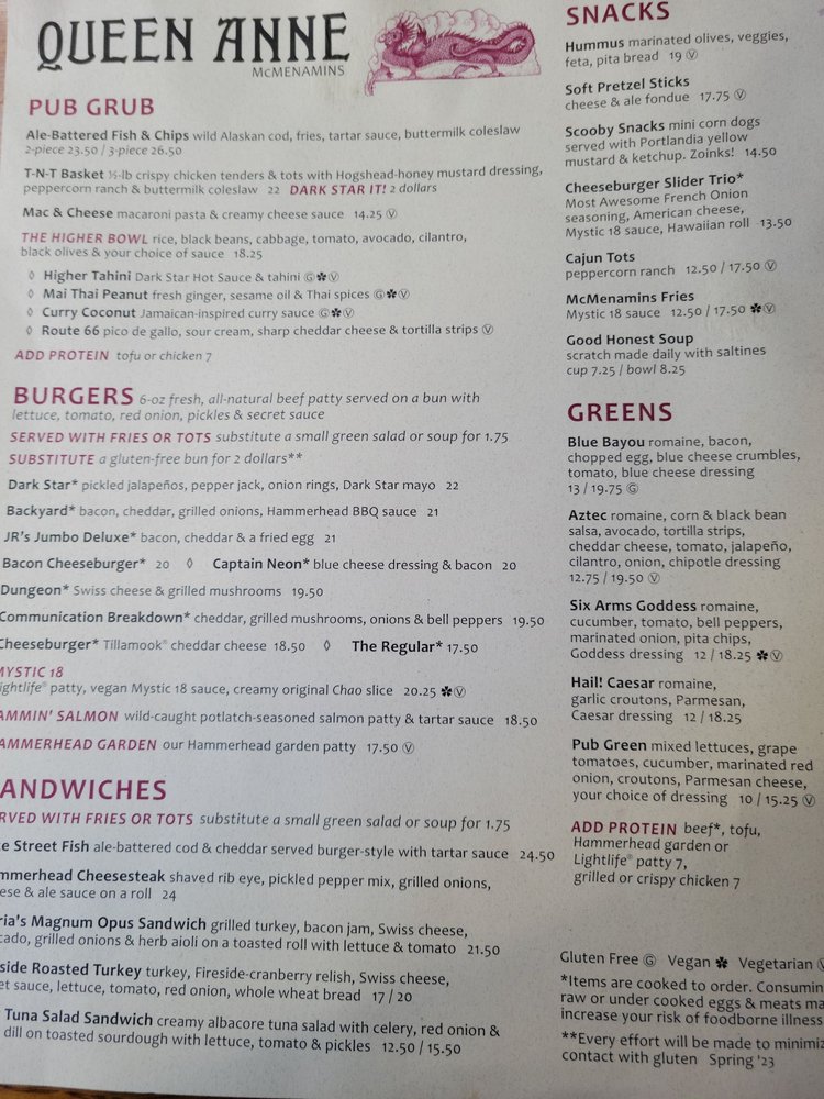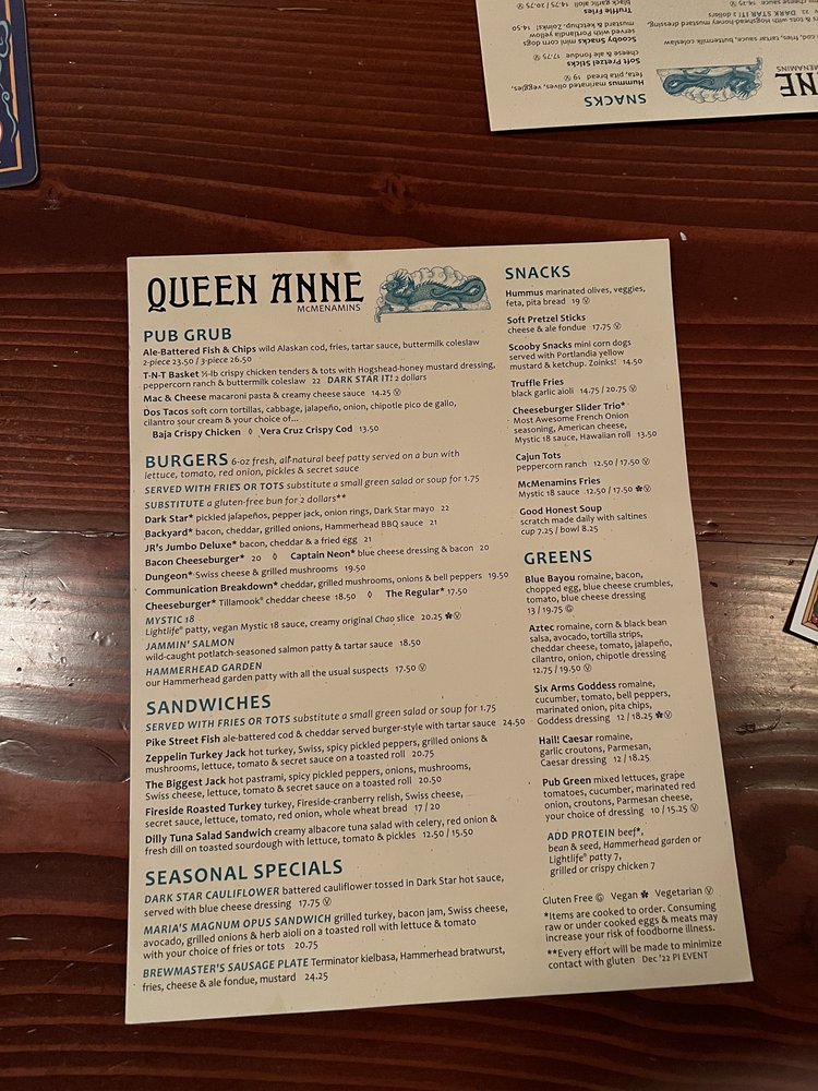 McMenamins Queen Anne is an American restaurant located in Seattle, offering a diverse menu with vegan and vegetarian options. The ambiance is described as eclectic, cozy, and laidback by satisfied customers. The menu features delicious starters like Cajun Tots and Cheeseburger Slider Trio, along with mouth-watering burgers such as the Backyard Burger and Bacon Cheeseburger. Customers praise the flavorful dishes, with standout items like the Seoul City Crispy Chicken Sandwich receiving high acclaim. Additionally, the restaurant prides itself on its generous pours of beer and cocktails. With a welcoming atmosphere, good service, and a range of delectable dishes, McMenamins Queen Anne is a must-visit for those looking for a satisfying dining experience in Seattle.